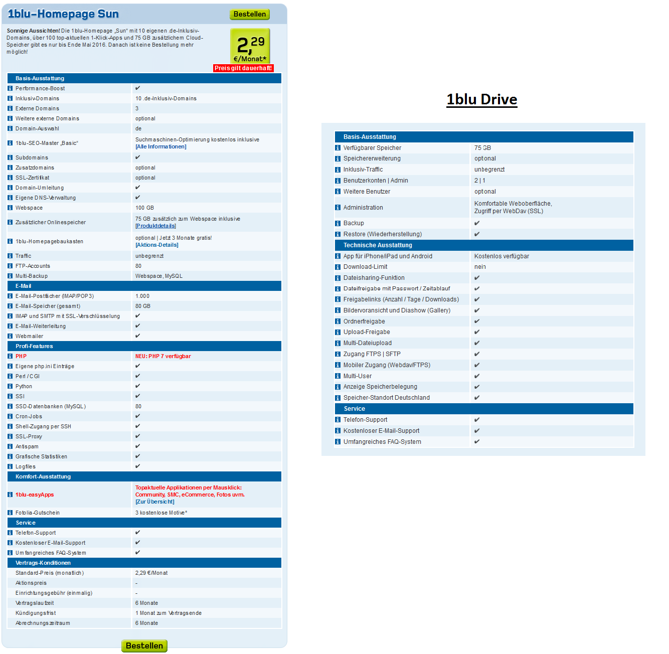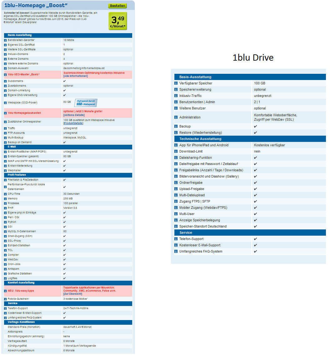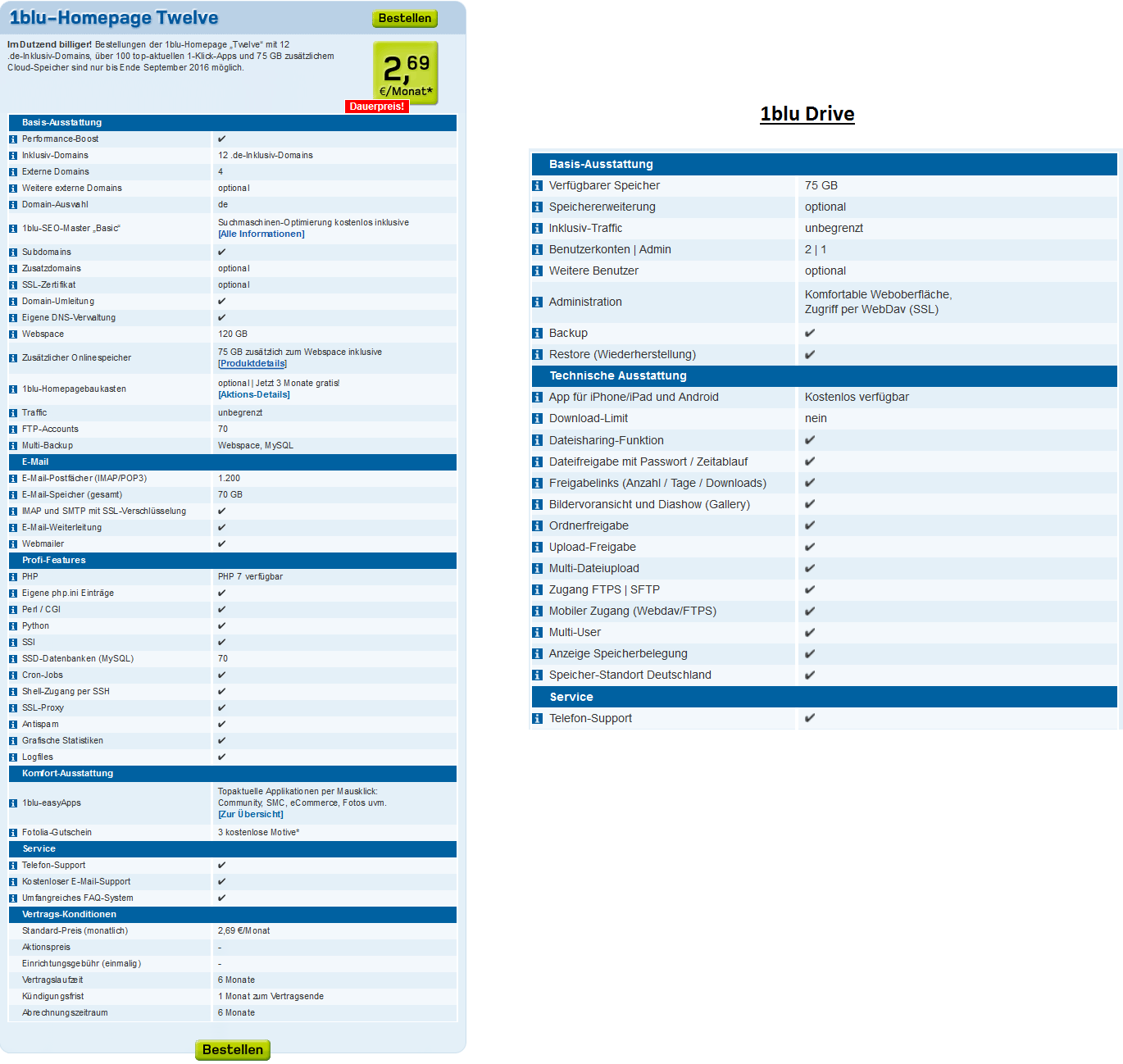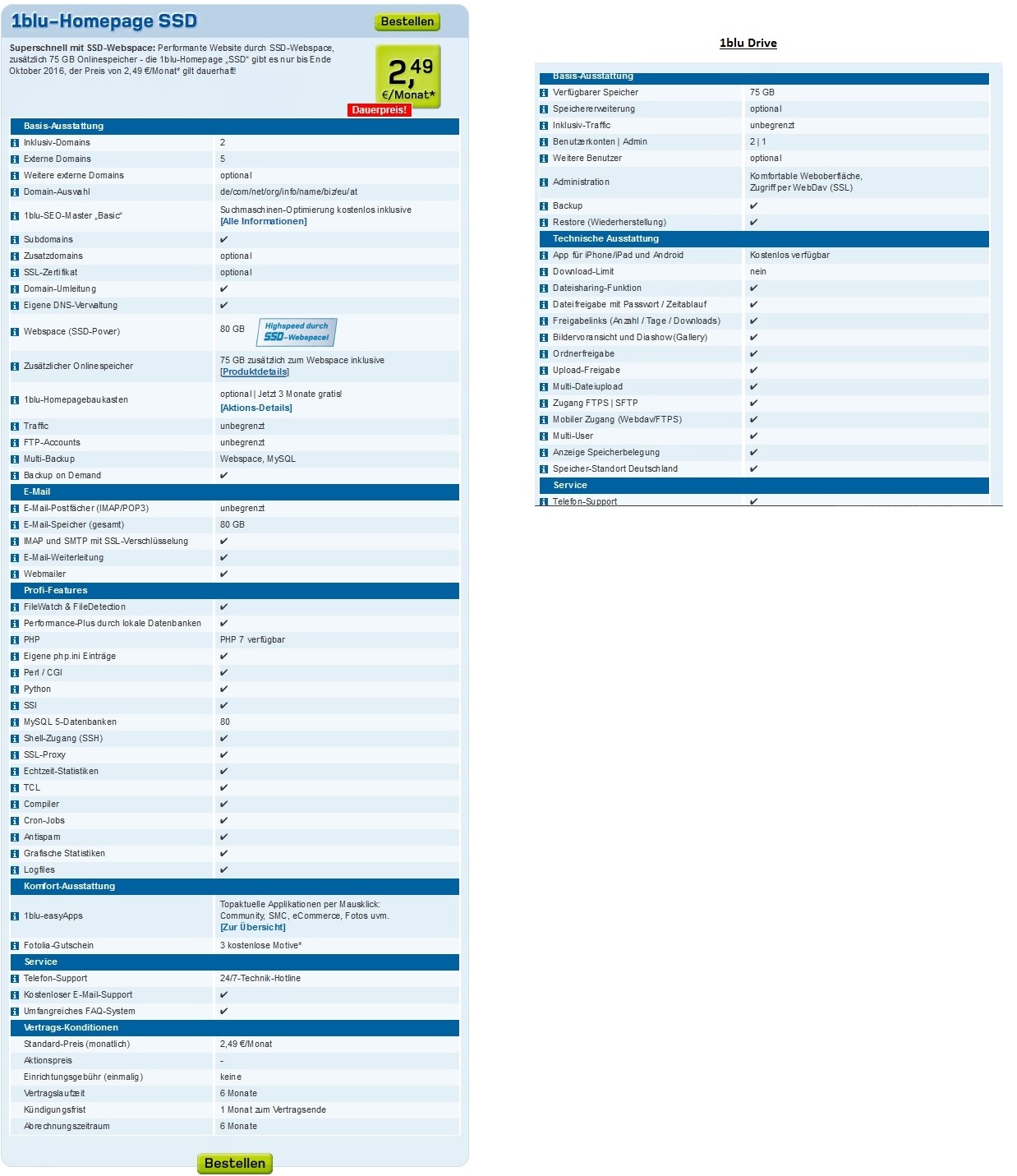 1blu Homepage "SSD" (10/2016) 2,49 Euro / monatlich