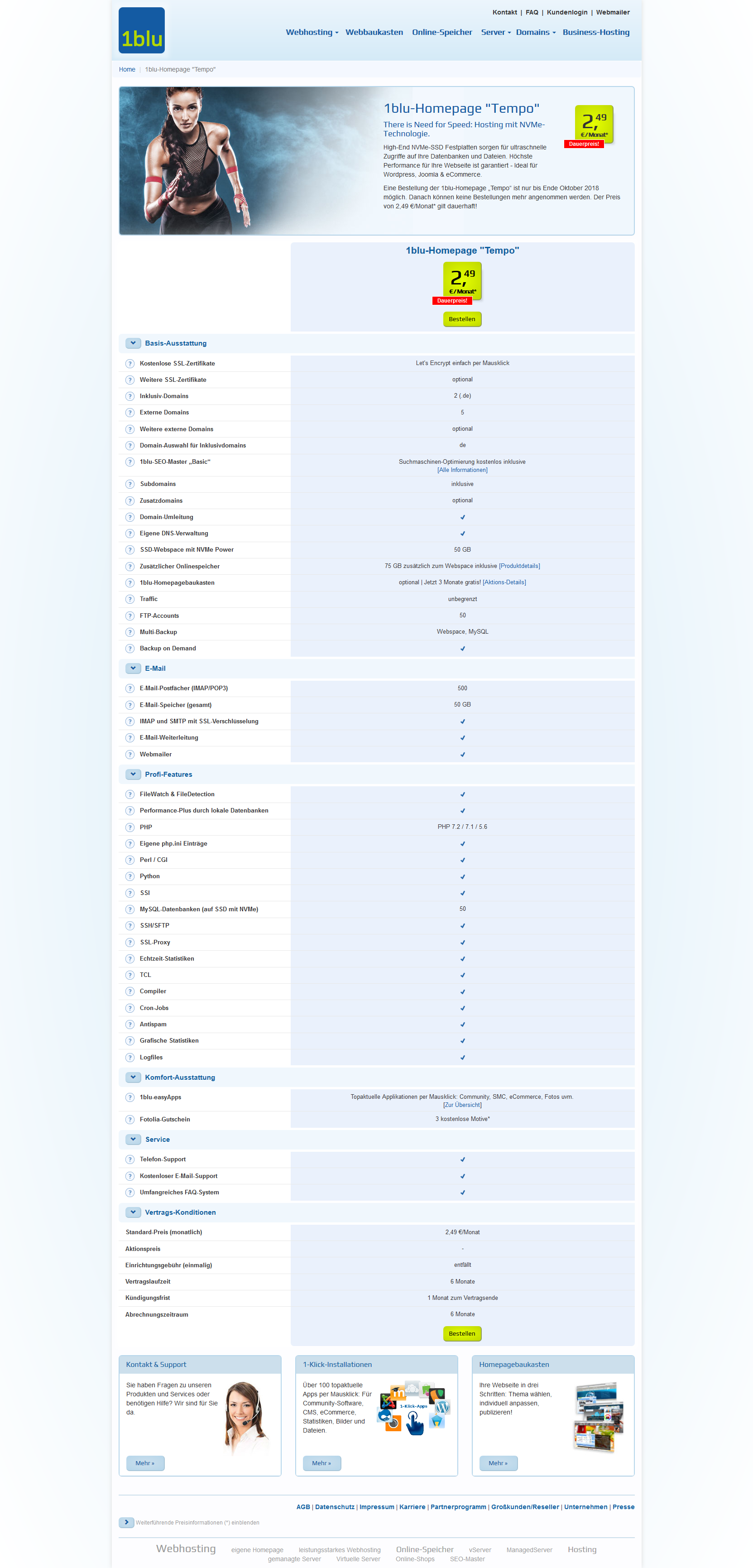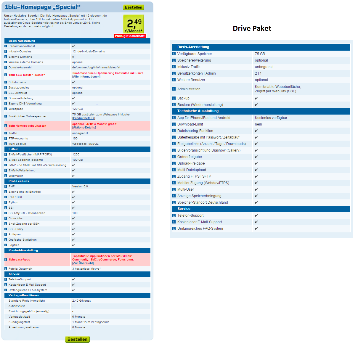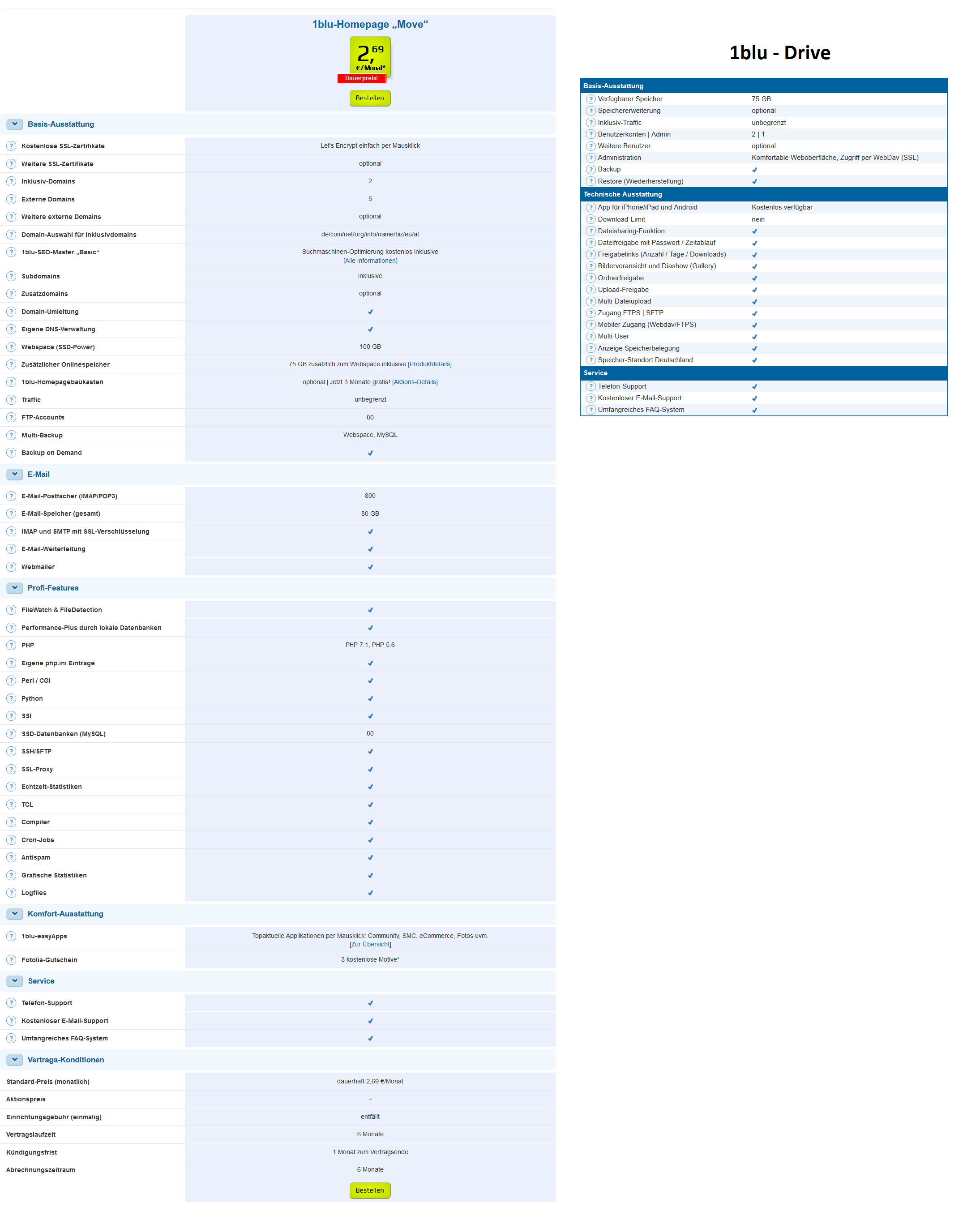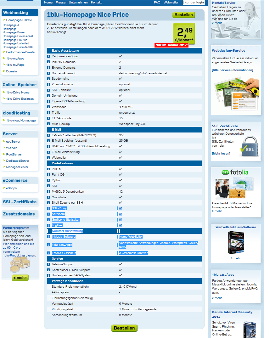 1blu Homepage "SSD" (10/2016) 2,49 Euro / monatlich
