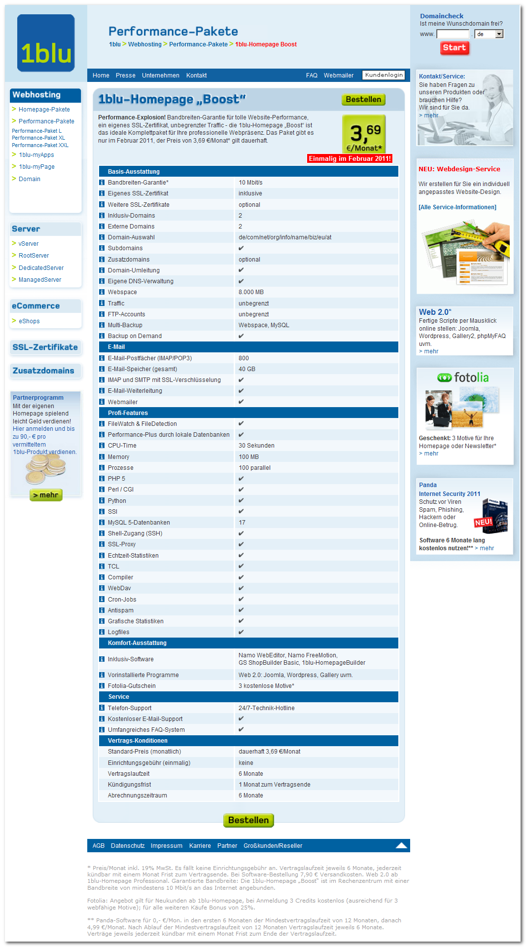 1blu - Homepage Boost (02/2011) 3,69 Euro / monatlich 6,90 Euro / monatlich