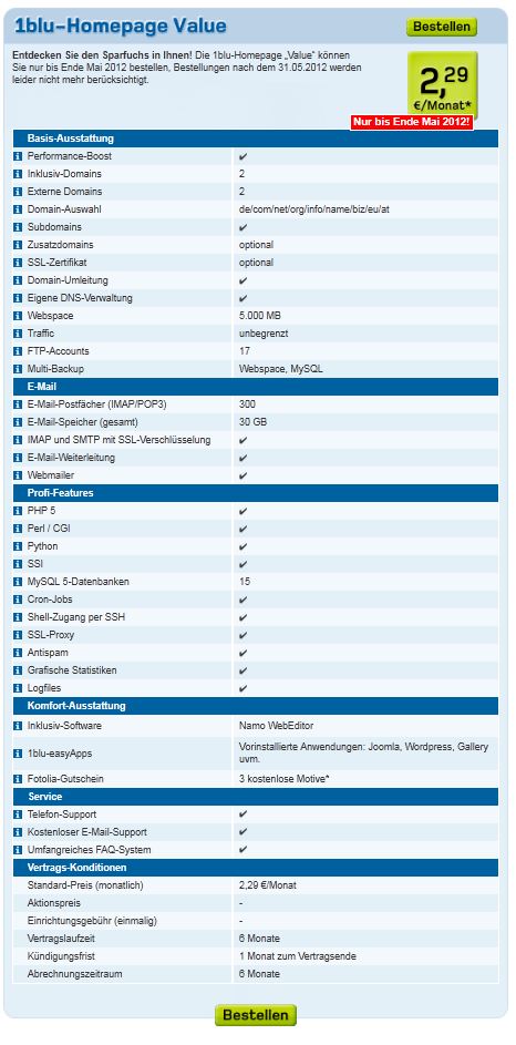 1blu - Homepage Value (05/2012) 2,29 Euro / monatlich 4,90 Euro / monatlich