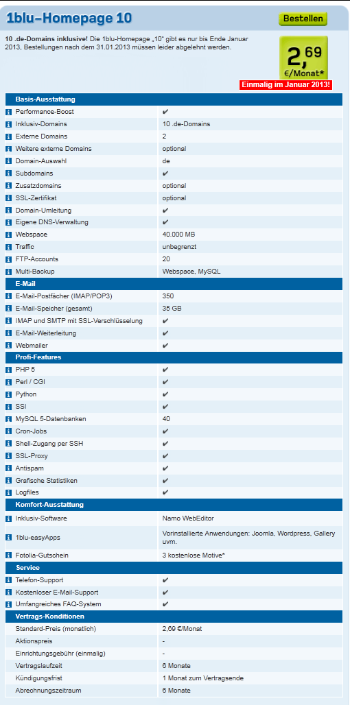 1blu - Homepage 10 (01/2013) 2,69 Euro / monatlich 4,90 Euro / monatlich