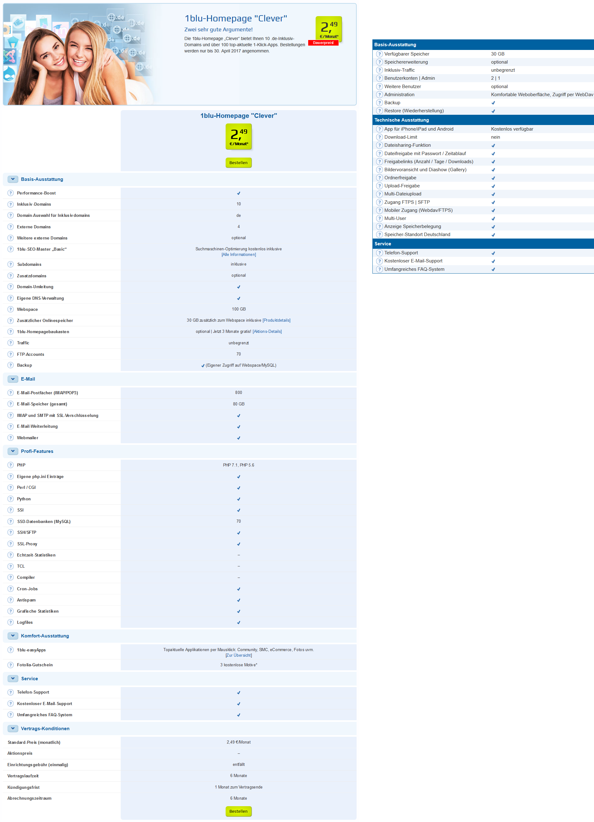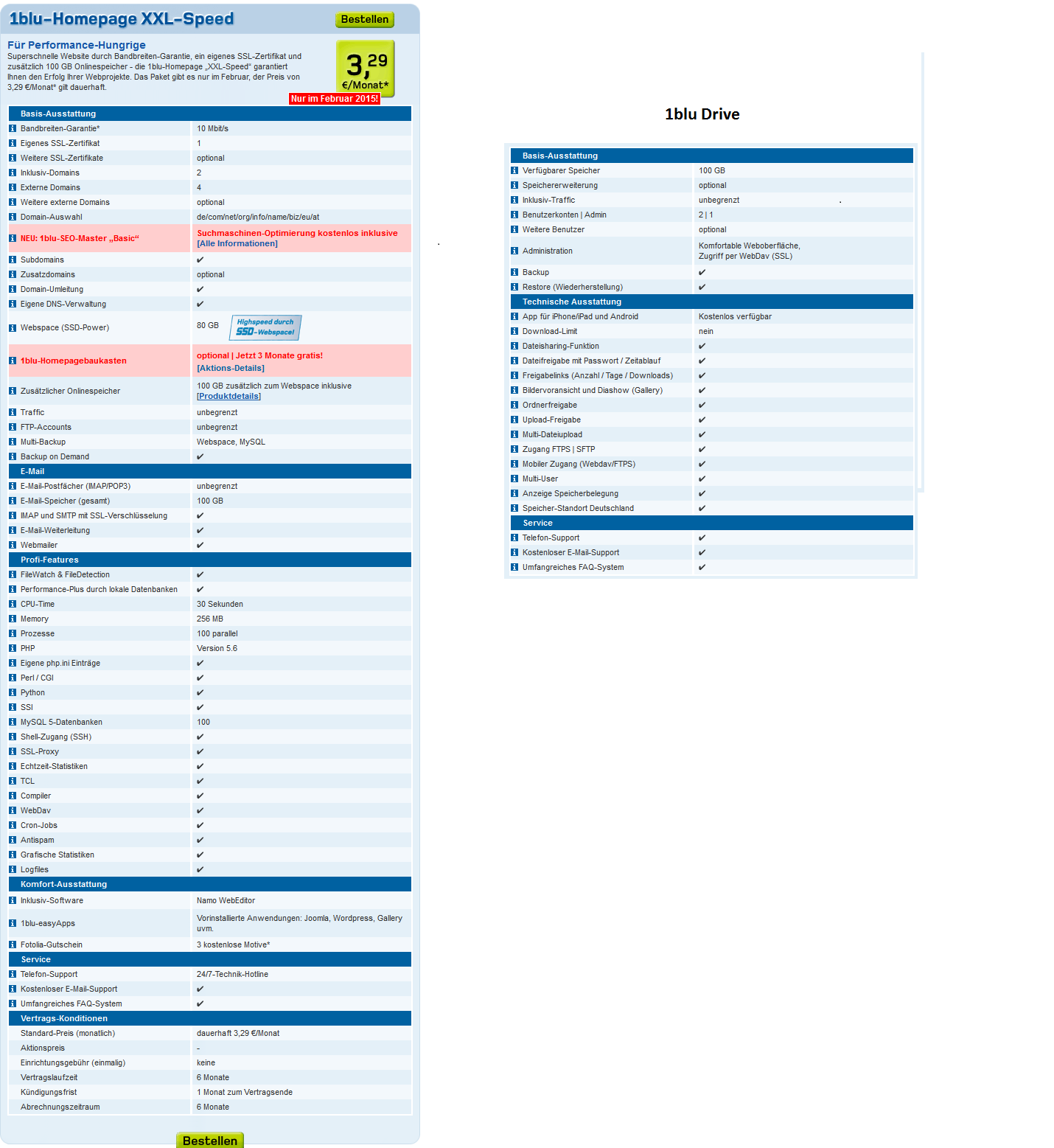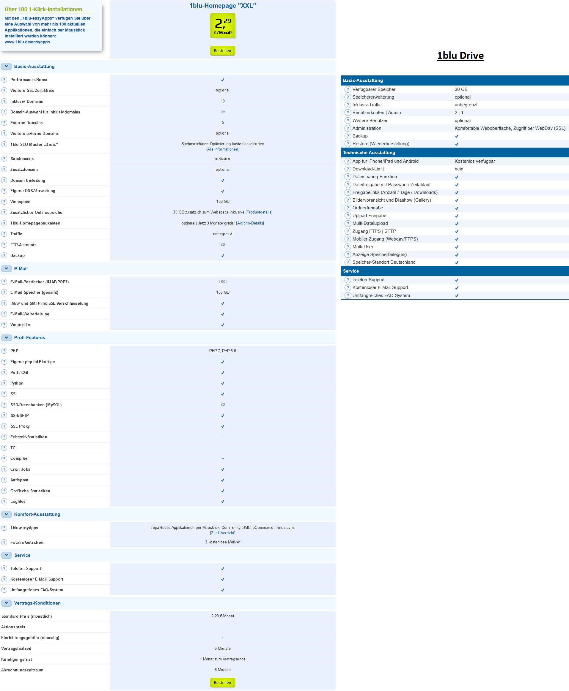 1blu Homepage "XXL" (01/2017) 2,29 Euro / monatlich
