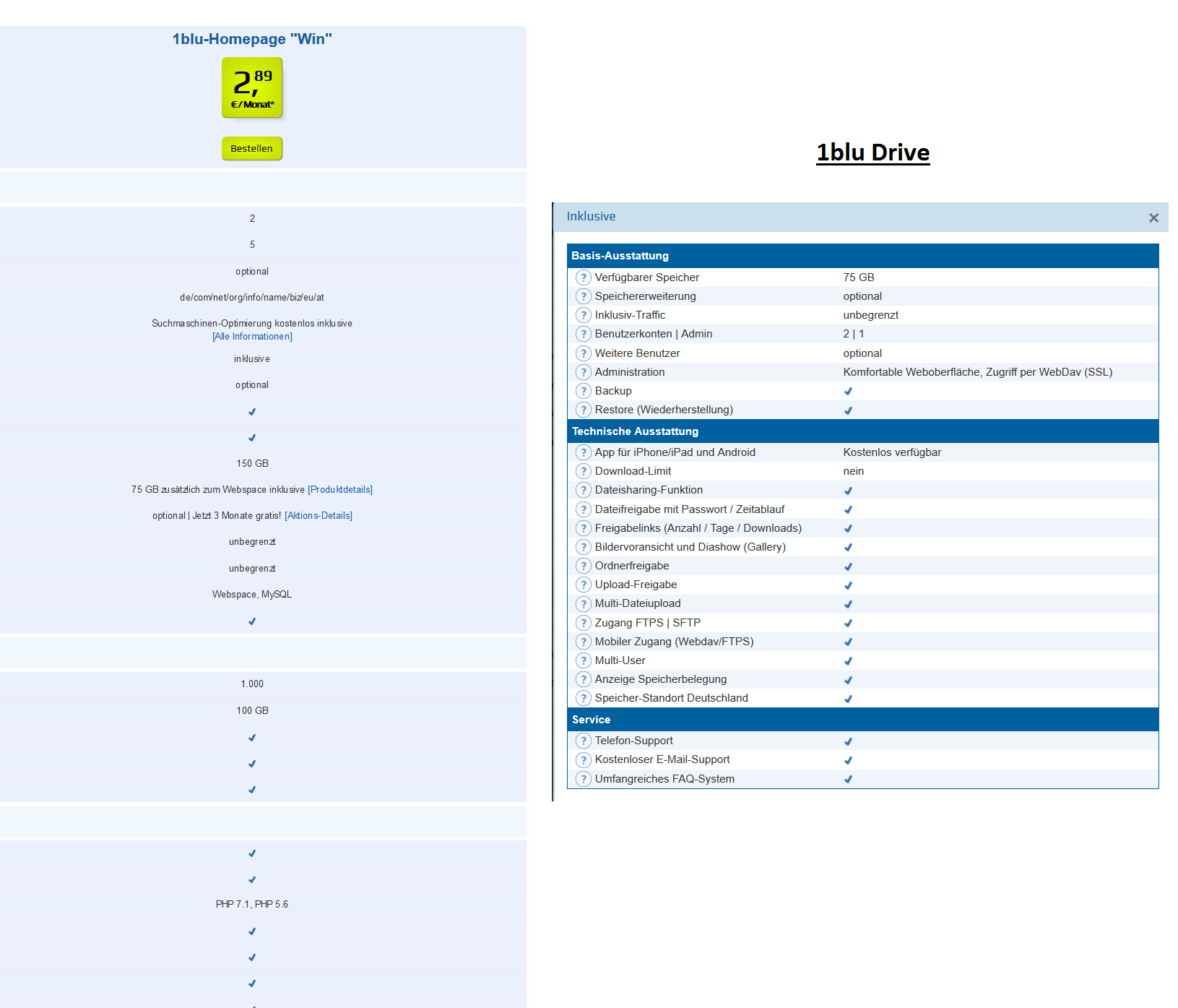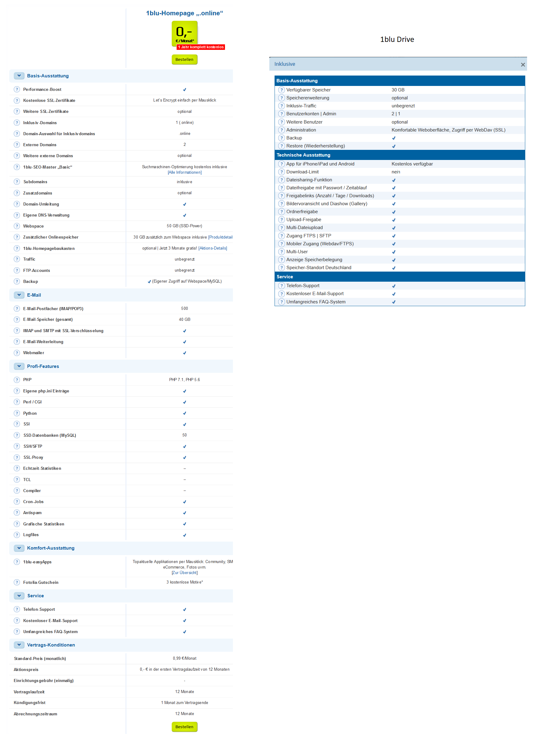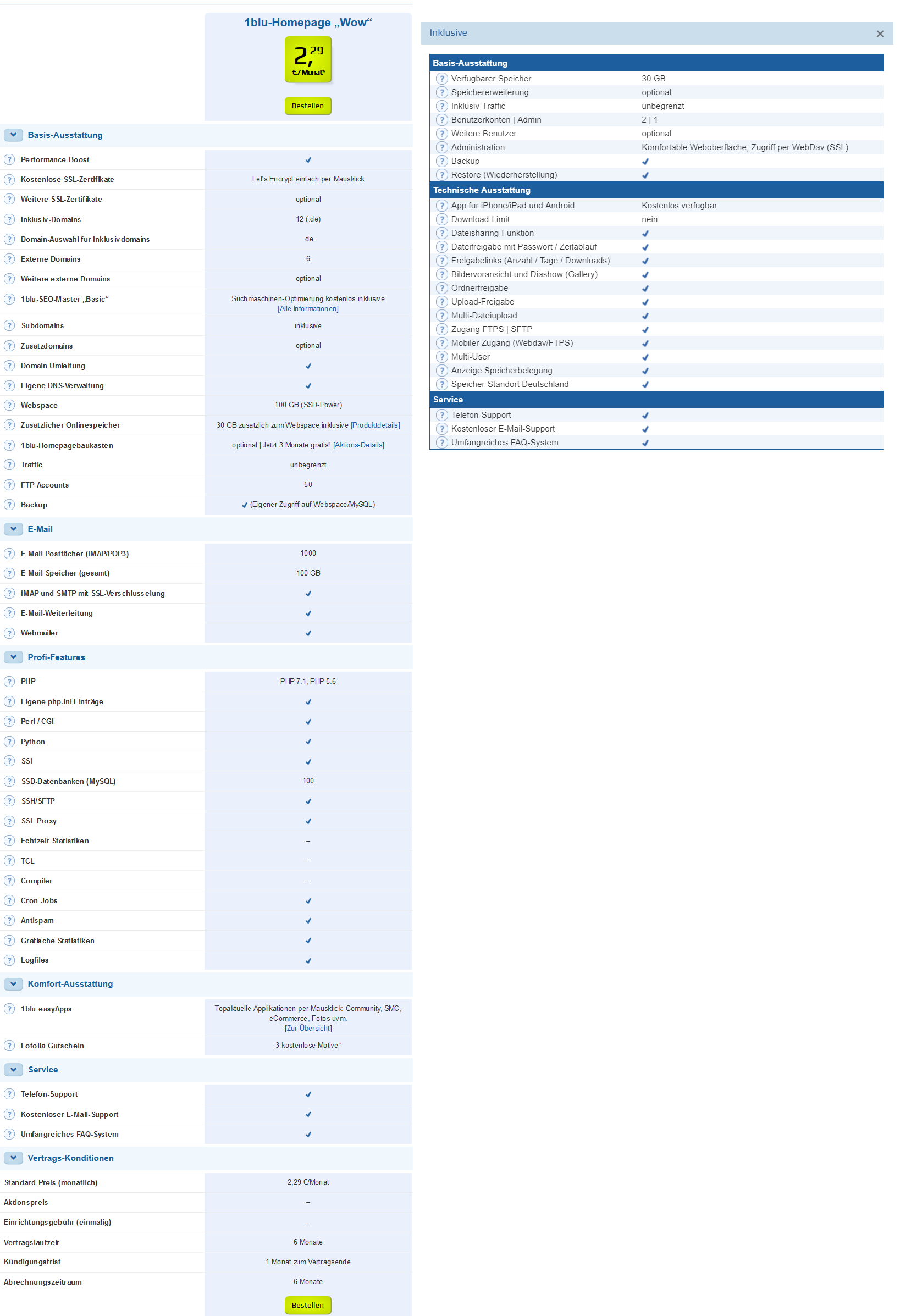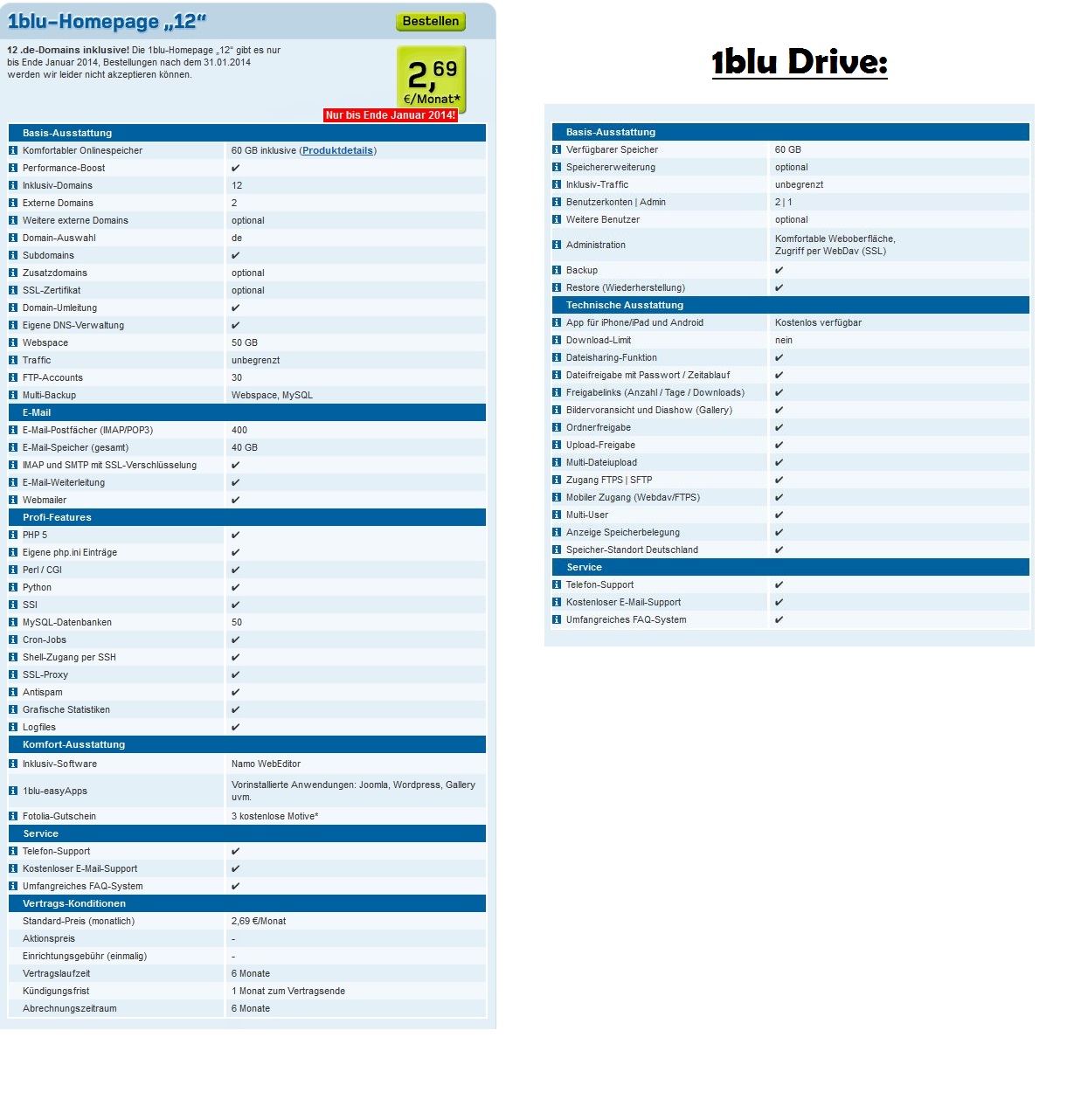 1blu Homepage "XXL" (01/2017) 2,29 Euro / monatlich