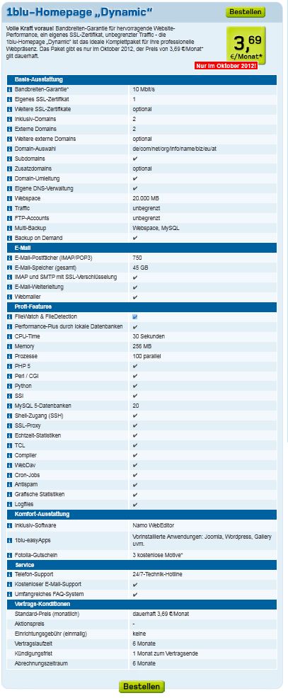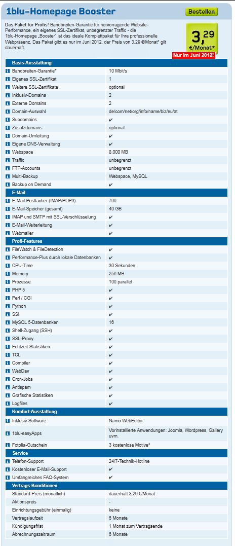 1blu - Homepage Booster (06/2012) 3,29 Euro / moantlich 5,90 Euro / monatlich