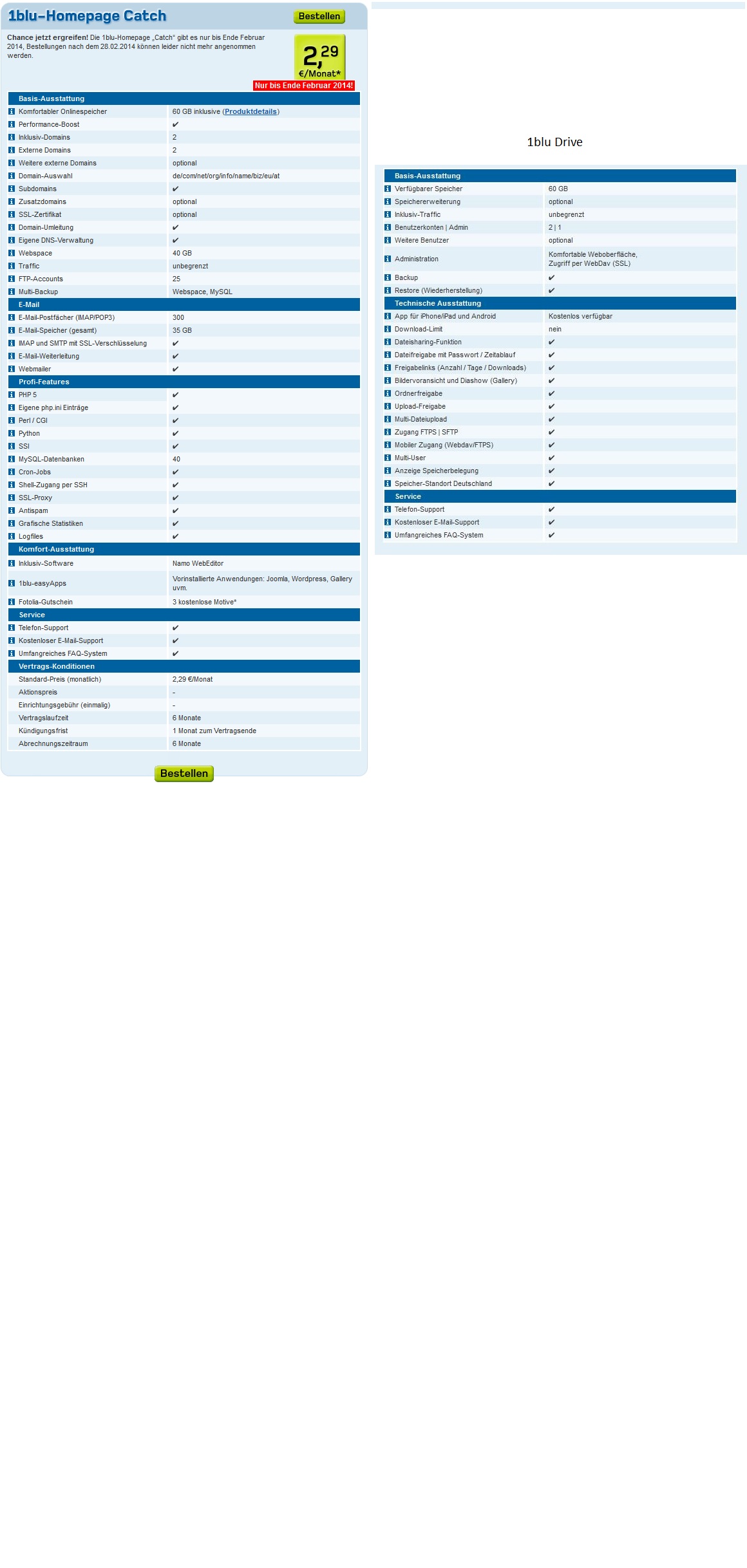 1blu Homepage "Catch" (02/2014) 2,29 Euro / monatlich