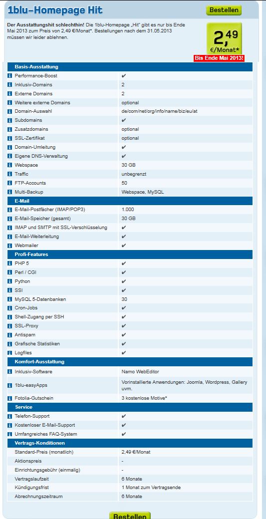 1blu - Homepage Hit (05/2013) 2,49 Euro / monatlich 4,90 Euro / monatlich