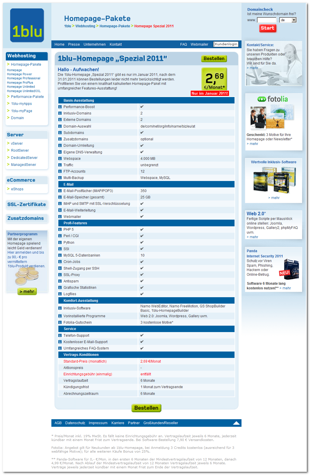 1blu - Homepage Spezial (01/2011) 2,69 Euro / monatlich 4,90 Euro / monatlich