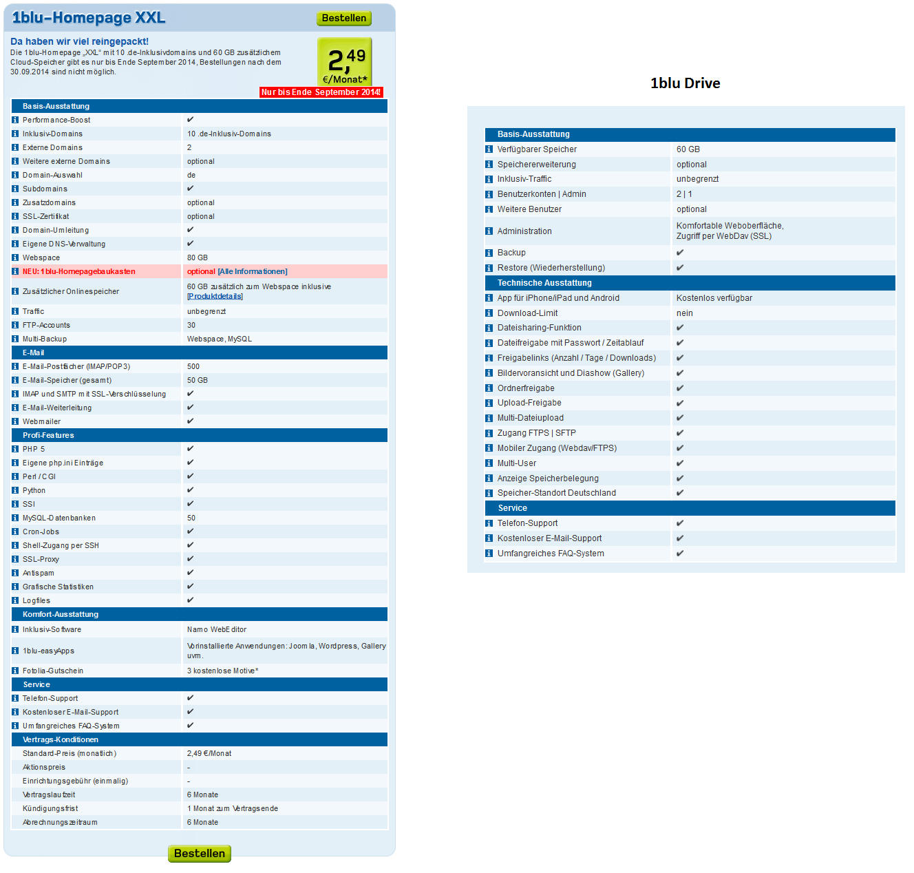 1blu Homepage "XXL" (09/2014) 2,49 Euro / monatlich