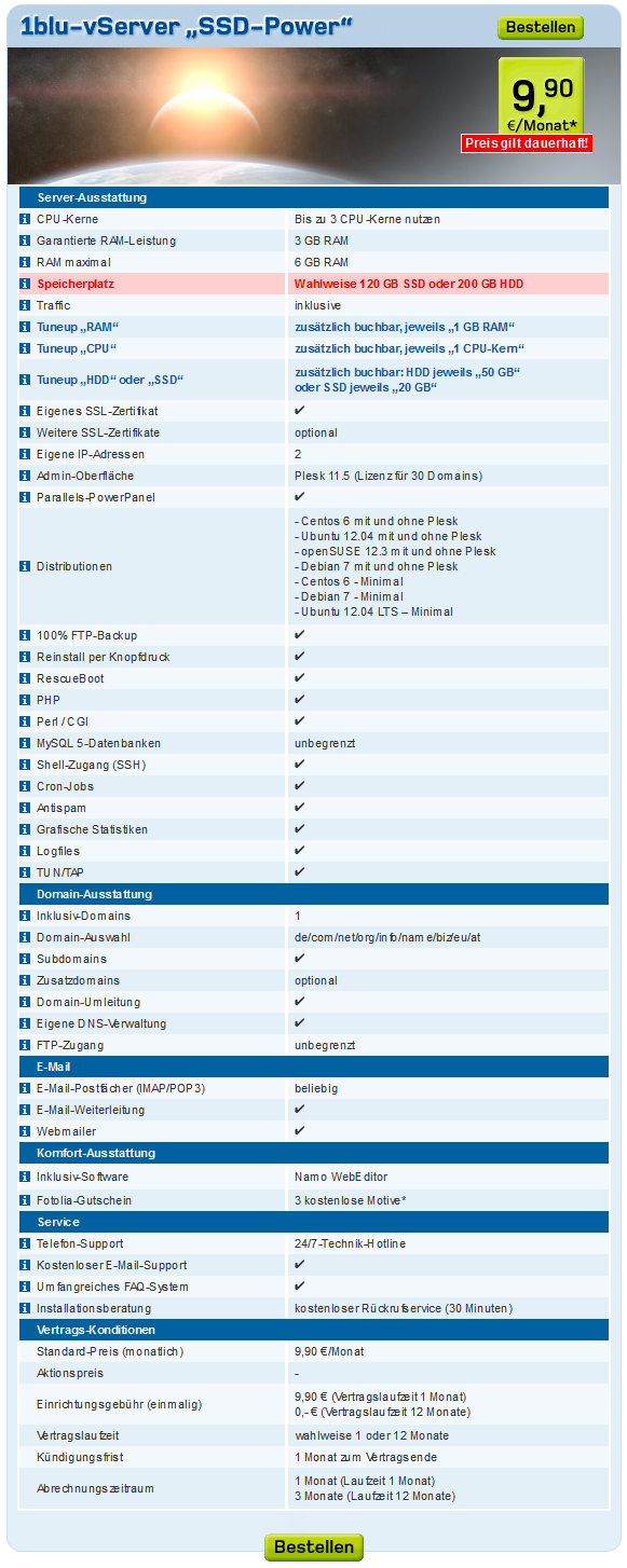 V-Server SSD Power (06/2014) 9,90 Euro / monatlich