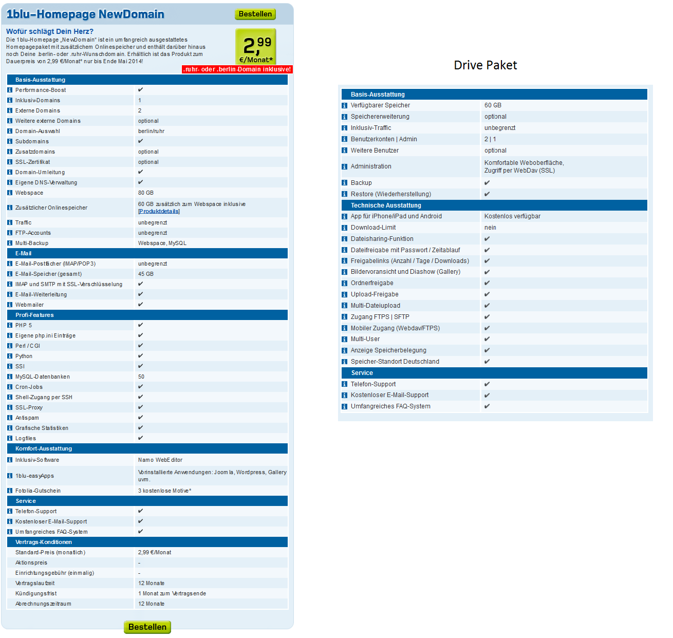 1blu Homepage "new Domain" (05/2014) 2,99 Euro / monatlich