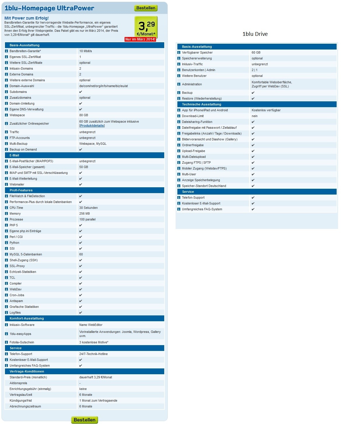 1blu Homepage "Ultra Power" (03/2014) 3,29 Euro / monatlich