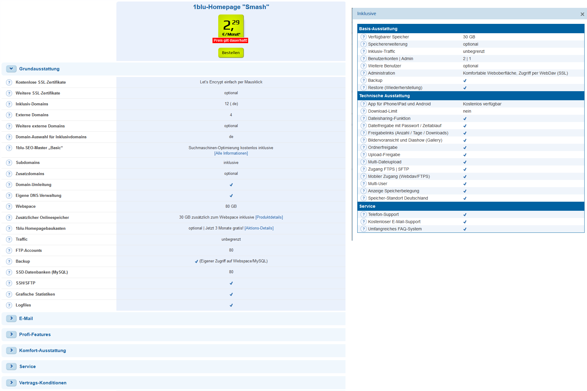 1blu Homepage "Smash" (09/2018) 2,29 Euro / monatlich