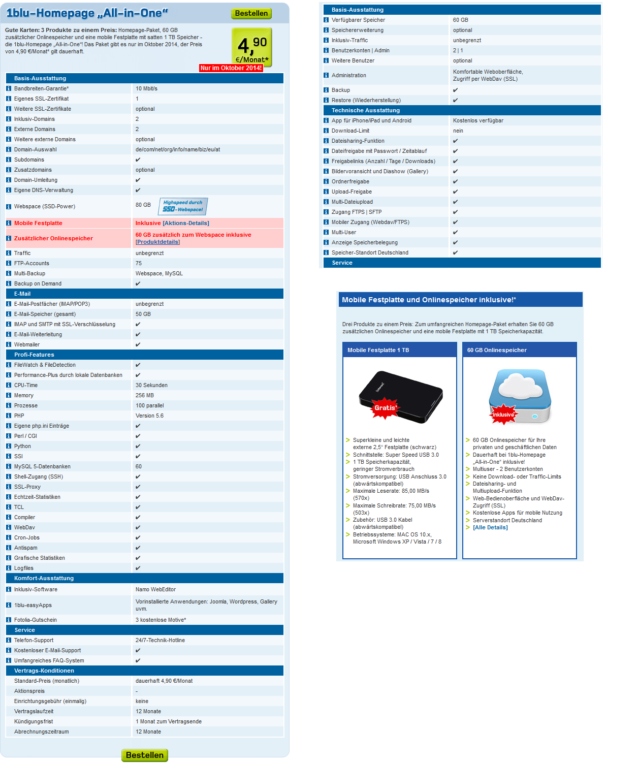 1blu Homepage "All-in-One" (10/2014) 4,90 Euro / monatlich