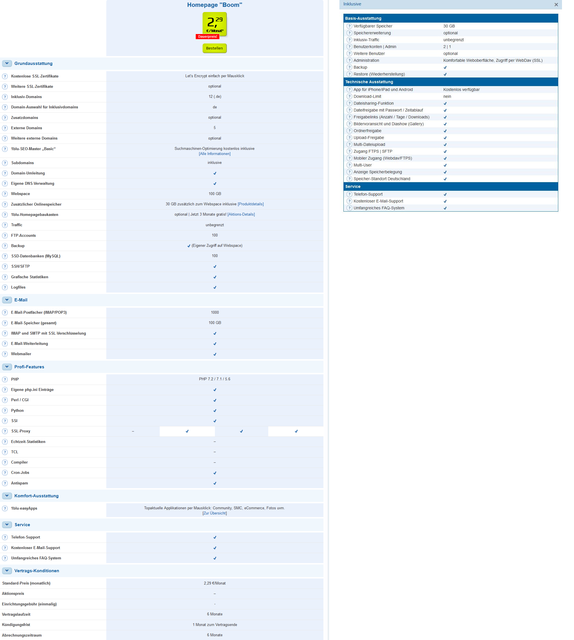 1blu Homepage "Boom" (01/2019) 2,29 Euro / monatlich