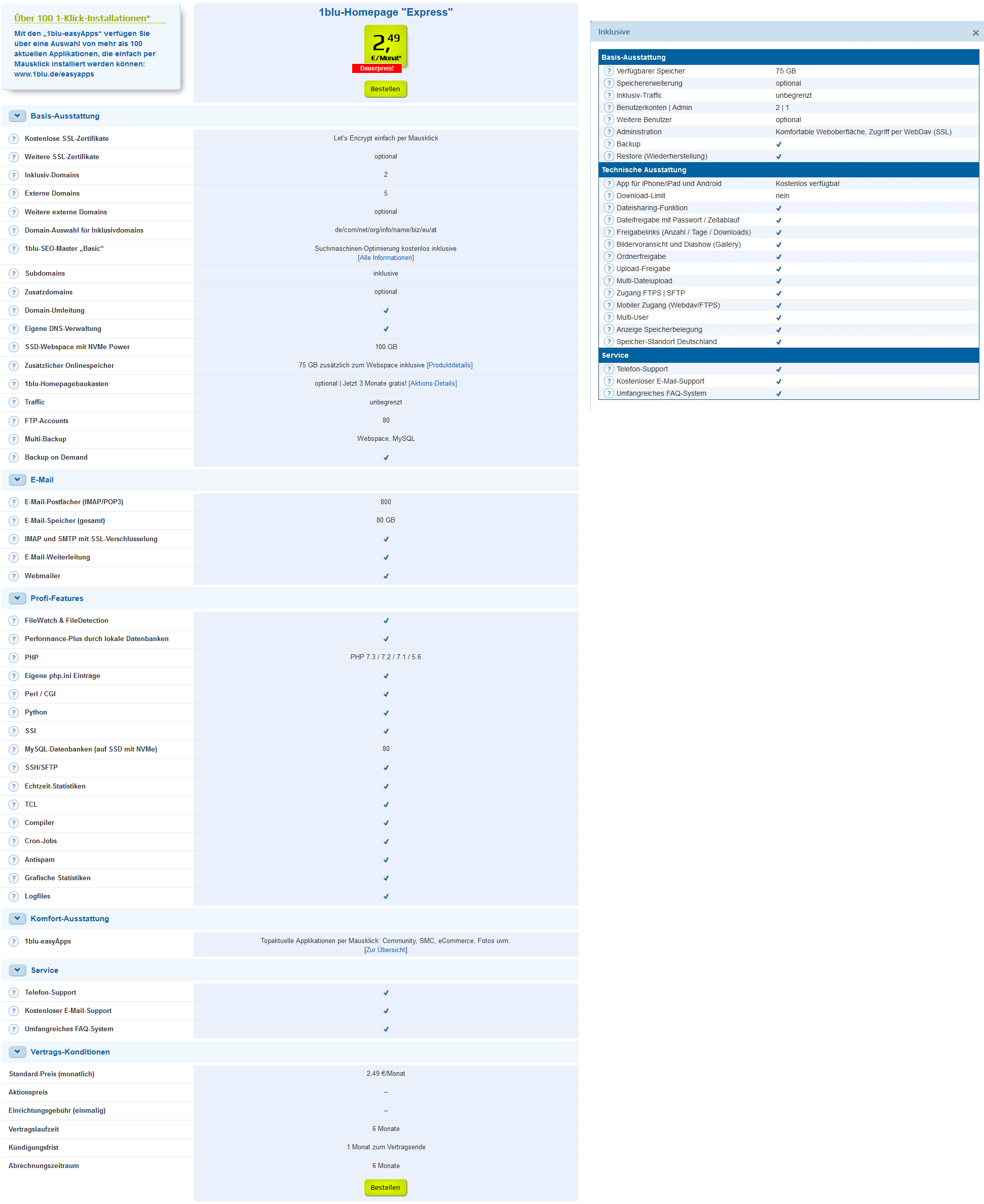 1blu Homepage "express" (02/2019) 2,49 Euro / monatlich