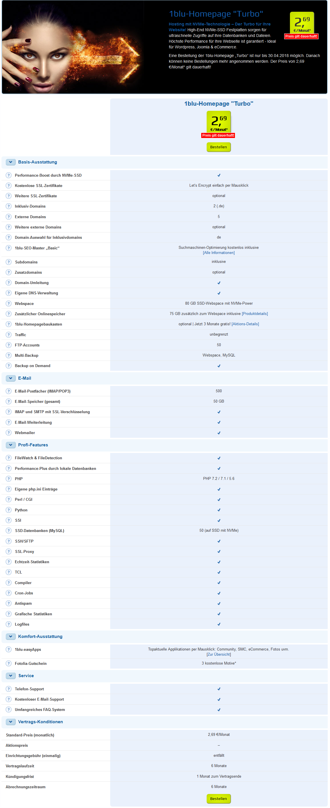 1blu Homepage "turbo" (04/2018) 2,69 Euro / monatlich