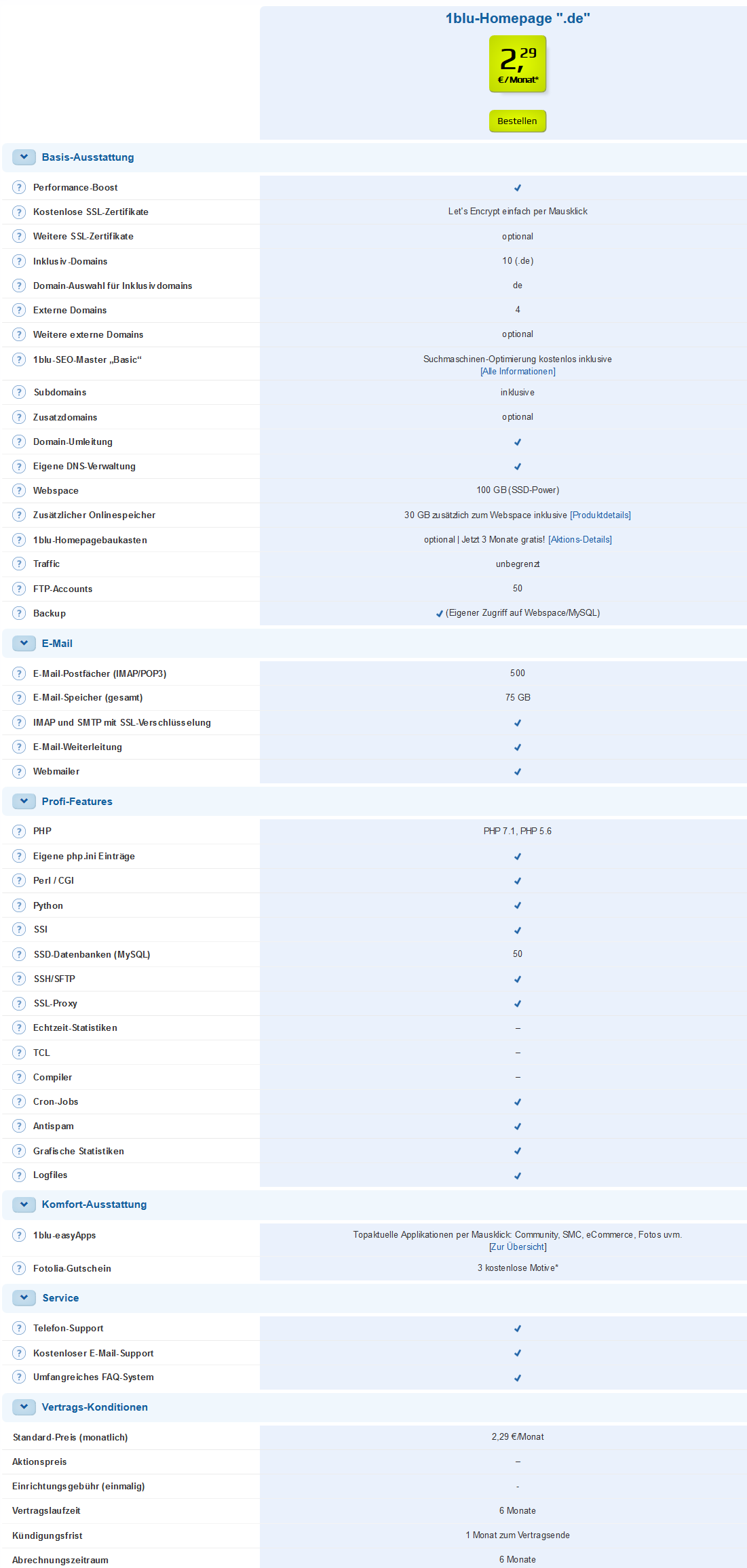 1blu Homepage "de" (08/2017) 2,29 Euro / monatlich