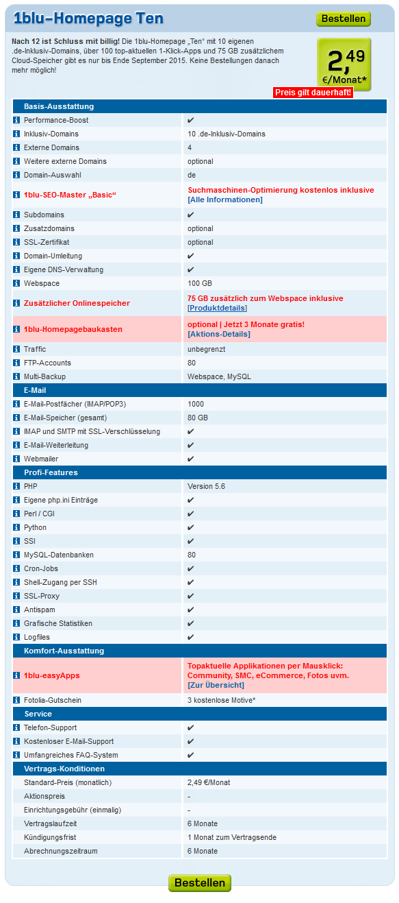 1blu Homepage "ten" (09/2015) 2,49 Euro / monatlich